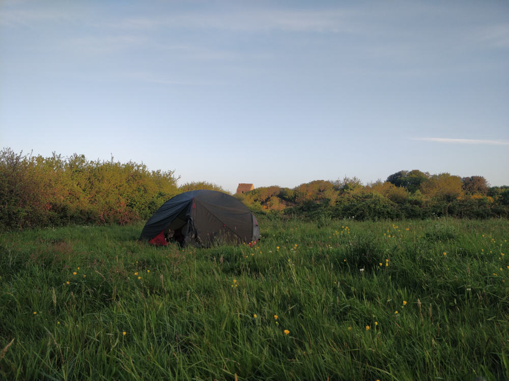 Mis à part quelques cris de renards et un peu de vent, la nuit a été agréable. On se lève vers 7h30, il fait encore relativement froid. Rien que de plier la tente, couverte de rosée/condensation, mais doigts sont gelés.